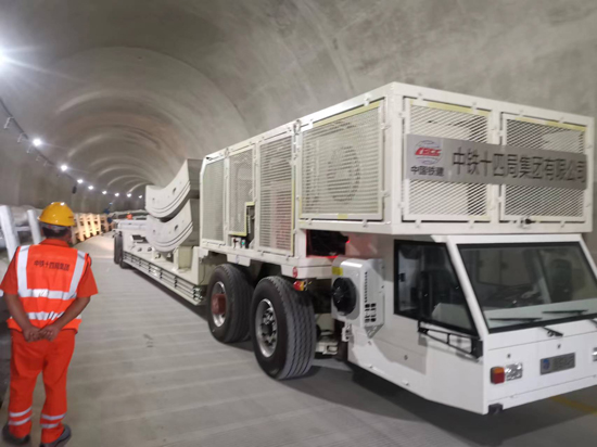 本批次車輛將作為工程建設中與超大直徑盾構(gòu)機配套的主要設備,承擔起從地面箱涵存放地,經(jīng)由隧道斜井,將整體箱涵運輸至盾構(gòu)機內(nèi)部吊機的重任。